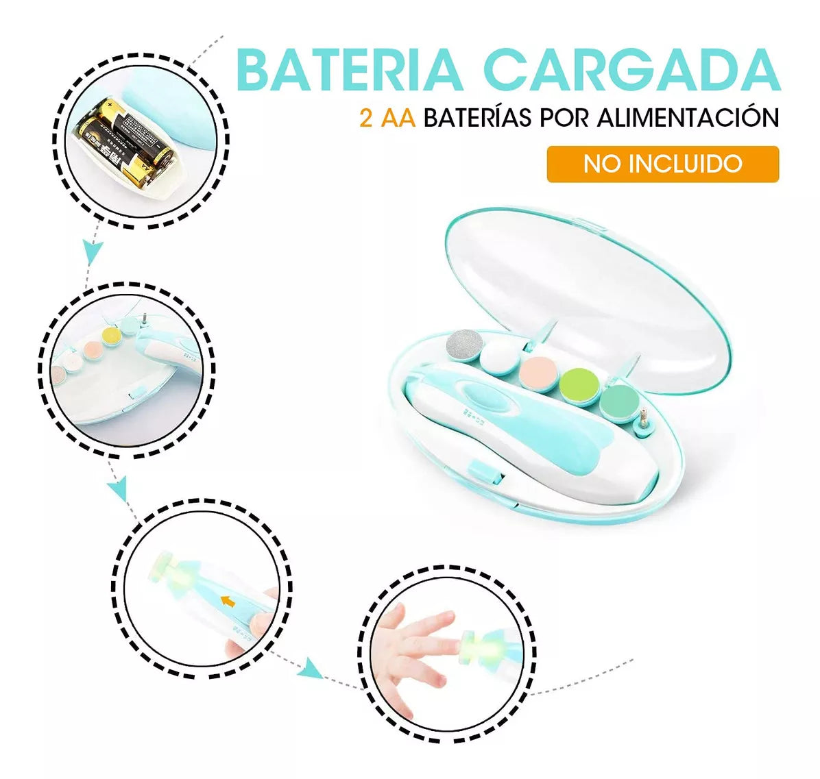 No, su diseño seguro y la tecnología de limado evitan que pueda cortar o lastimar la piel, incluso si el bebé se mueve durante el proceso. Además, el dispositivo se detiene si se aplica demasiada presión.